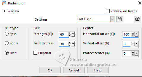 Adjust>Blur>Radial Blur - Twirl checked.