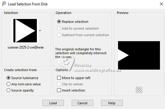 19. Selections>Load/Save Selection>Load Selection from Disk.