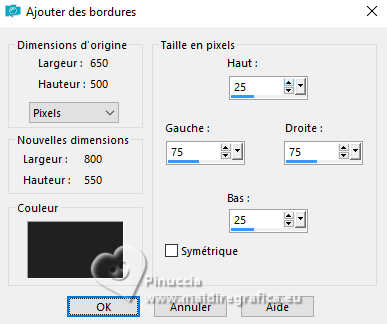 Image>Ajouter des bordures, symétrique décoché, couleur d'arrière plan.