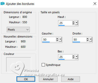 Image>Ajouter des bordures, 50 pixels, symétrique, couleur d'avant plan.