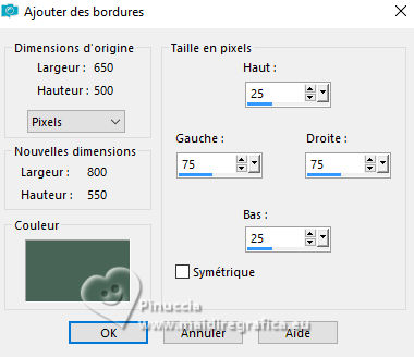 Image>Ajouter des bordures, symétrique décoché, couleur d'arrière plan.
