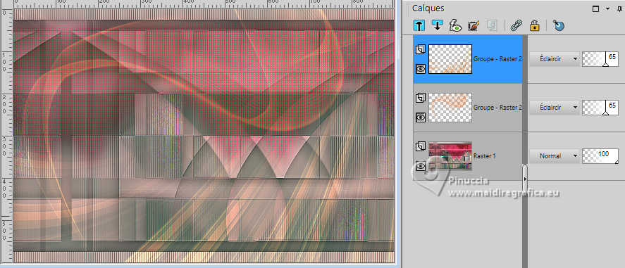 Placer le calque en mode Éclaircir et réduire l'opacité à 65%.