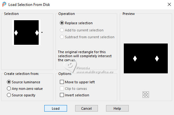 21. Selections>Load/Save Selection>Load Selection from Disk.