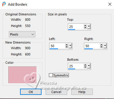 Image>Add borders, 50 pixels, symmetric, foreground color.