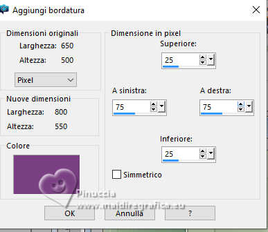 Immagine>Aggiungi bordatura, simmetriche non selezionato, colore di sfondo.