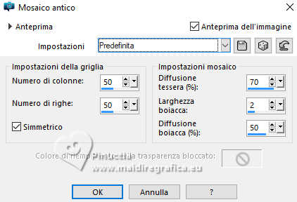 18. Effetti>Effetti di trama>Mosaico antico, con i settaggi precedenti.