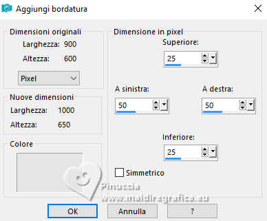 Immagine>Aggiungi bordatura, simmetriche non selezionato, colore di sfondo.