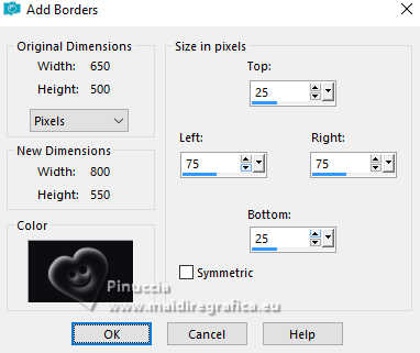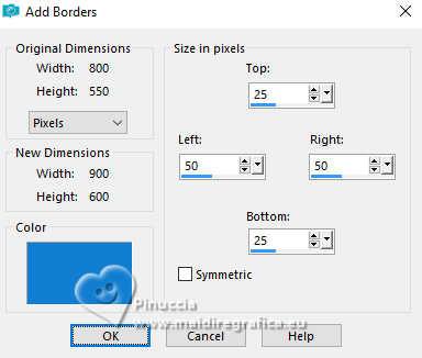Image>Add Borders, 50 pixels, symmetric, foreground color.