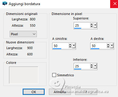 Immagine>Aggiungi bordatura, simmetriche non selezionato, colore di sfondo.