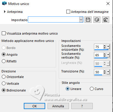 8. Effetti>Effetti di immagine>Motivo unico, Orizzontale selezionato