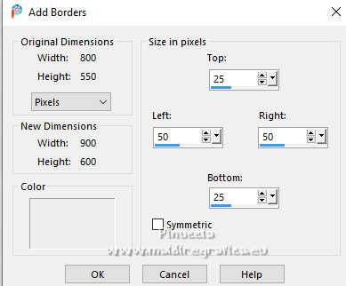 Image>Add Borders, 50 pixels, symmetric, foreground color.