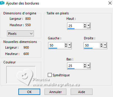 Image>Ajouter des bordures, symétrique décoché, couleur d'arrière plan.