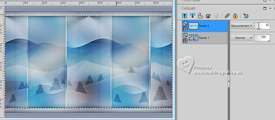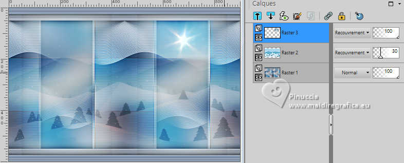 28. Placer le calque en mode Recouvrement et réduire l'opacité à 30%.