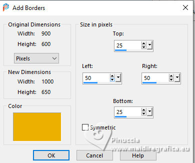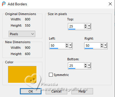 Image>Add Borders, 50 pixels, symmetric, foreground color.