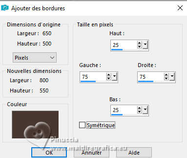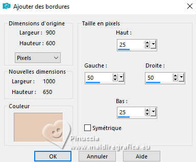 Image>Ajouter des bordures, symétrique décoché, couleur d'arrière plan.