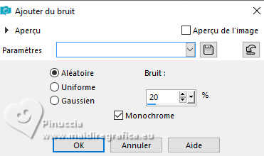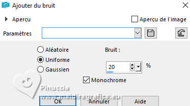 4. Réglage>Ajouter/Supprimer du bruit>Ajouter du bruit, aléatoire coché.
