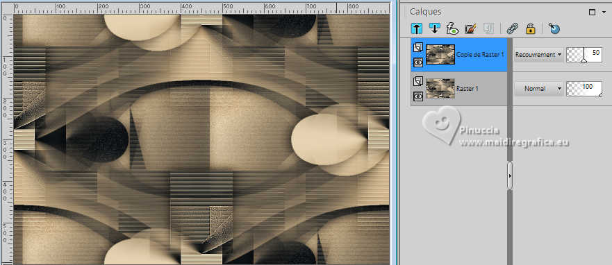 Placer le calque en mode Recouvrement et réduire l'opacité à 50%.