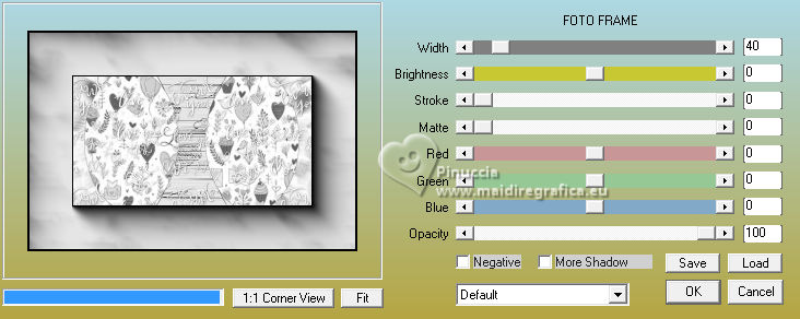 qui puoi trovare qualche risposta ai tuoi dubbi. Se l'argomento che ti interessa non è presente, ti prego di segnalarmelo. Questo tutorial è stato realizzato con PSP2020 e tradotto con PSPX9 e PSP2020, ma può essere eseguito anche con le altre versioni di PSP. Dalla versione X4, il comando Immagine>Rifletti è stato sostituito con Immagine>Capovolgi in orizzontale, e il comando Immagine>Capovolgi con Immagine>Capovolgi in verticale. Nelle versioni X5 e X6, le funzioni sono state migliorate rendendo disponibile il menu Oggetti. Con la nuova versione X7, sono tornati Rifletti>Capovolgi, ma con nuove varianti. Vedi la scheda sull'argomento qui ![]() Traduzione inglese quiOccorrente: 1 tube principale. 1 immagine tipo decoupage (disponibile quie) Il resto del materiale ![]() (in questa pagina trovi i links ai siti dei creatori di tubes) Filtri: se hai problemi con i filtri, consulta la mia sezione filtri qui Filters Unlimited 2.0 qui VM Toolbox - Blast qui Xero - Greyscaler qui Mura's Meister - Copies qui AAA Frames - Foto Frame qui I filtri VM Toolbox si possono usare da soli o importati in Filters Unlimited (come fare vedi qui) Se un filtro fornito appare con questa icona ![]() non esitare a cambiare modalità di miscelatura e opacità secondo i colori utilizzati. ![]() Apri le maschere in PSP e minimizzale con il resto del materiale. 1. Apri una nuova immagine trasparente 900 x 600 pixels. 2. Imposta il colore di primo piano con il colore nero (o, se preferisci, con un colore scelto dal tuo materiale). Imposta il colore di sfondo con il colore bianco. ![]() Riempi l'immagine trasparente con il colore nero.3. Livelli>Nuovo livello raster. Riempi il livello con il colore bianco.4. Livelli>Nuovo livello maschera>Da immagine. Apri il menu sotto la finestra di origine e vedrai la lista dei files aperti. Seleziona la maschera Mask Decoupage-byElaineA ![]() Effetti>Effetti di bordo>Aumenta di più. Livelli>Unisci>Unisci gruppo. 5. Livelli>Unisci>Unisci tutto. 6. Effetti>Plugins>VM Toolbox - Blast, con i settaggi standard. ![]() Ripeti l'Effetto una seconda volta. 7. Apri Template Tutorial 07 ![]() Modifica>Copia. Torna al tuo lavoro e vai a Modifica>Incolla come nuovo livello. 8. Attiva lo strumento Bacchetta magica ![]() e clicca nelle due parti bianche per selezionarle. ![]() Premi sulla tastiera il tasto CANC ![]() 9. Apri la carta da decoupage IA di ElaineA, per l'esempio ![]() Modifica>Copia. Torna al tuo lavoro e vai a Modifica>Incolla nella selezione. Puoi usare una tua carta, ma è preferibile una come quella mostrata in questo tutorial. Se hai difficoltà a trovarla, puoi cliccare sul link dove trovi alcune carte di Elaine qui Selezione>Deseleziona. 10. Effetti>Plugins>Xero - Greyscaler, con i settaggi standard. ![]() 11. Livelli>Duplica. Attiva il livello sottostante dell'originale. Effetti>Plugins>Mura's Meister - Copies. ![]() 12. Attiva nuovamente il livello superiore. Immagine>Ridimensiona, all'80%, tutti i livelli non selezionato. 13. Livelli>Nuovo livello raster. Riempi il livello con il colore bianco.14. Livelli>Nuovo livello maschera>Da immagine Apri il menu sotto la finestra di origine e seleziona la maschera Mask Tutorial 07-by ElaineA ![]() 15. Effetti>Effetti di bordo>Aumenta di più. Livelli>Unisci>Unisci gruppo. 16. Effetti>Effetti 3D>Sfalsa ombra, colore nero. ![]() 17. Livelli>Unisci>Unisci tutto. 18. Effetti>Plugins>AAA Frames - Foto Frame, con i settaggi standard. ![]() 19. Apri il tuo tube e vai a Modifica>Copia. Torna al tuo lavoro e vai a Modifica>Incolla come nuovo livello. Immagine>Ridimensiona, se necessario, tutti i livelli non selezionato. Posiziona correttamente il tube.Effetti>Effetti 3D>Sfalsa ombra, a scelta. 20. Immagine>Aggiungi bordatura, 1 pixel, simmetriche, colore nero. 21. Firma il tuo lavoro e salva in formato jpg. Per il tube di questo esempio grazie Elaine ![]() ![]() Le vostre versioni. ![]() Irene ![]() Kika ![]() Puoi scrivermi se hai problemi o dubbi, o trovi un link che non funziona, o soltanto per un saluto. |