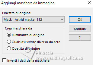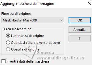 qui puoi trovare qualche risposta ai tuoi dubbi. Se l'argomento che ti interessa non è presente, ti prego di segnalarmelo. Questo tutorial è stato realizzato con PSP2020 e tradotto con PSPX9 e PSP2020, ma può essere eseguito anche con le altre versioni di PSP. Dalla versione X4, il comando Immagine>Rifletti è stato sostituito con Immagine>Capovolgi in orizzontale, e il comando Immagine>Capovolgi con Immagine>Capovolgi in verticale. Nelle versioni X5 e X6, le funzioni sono state migliorate rendendo disponibile il menu Oggetti. Con la nuova versione X7, sono tornati Rifletti>Capovolgi, ma con nuove varianti. Vedi la scheda sull'argomento qui ![]() Traduzione inglese quiOccorrente: a scelta: 1 paesaggio 1 tube principale. Il resto del materiale ![]() (in questa pagina trovi i links ai siti dei creatori di tubes) Filtri: se hai problemi con i filtri, consulta la mia sezione filtri qui AAA Frames - Foto Frame /AAA Filters - Tweed Frame qui ![]() non esitare a cambiare modalità di miscelatura e opacità secondo i colori utilizzati. ![]() Apri le maschere in PSP e minimizzale con il resto del materiale. 1. Apri una nuova immagine trasparente 900 x 600 pixels. 2. Selezione>Seleziona tutto. Apri il tuo paesaggio e vai a Modifica>Copia. Torna al tuo lavoro e vai a Modifica>Incolla nella selezione. Selezione>Deseleziona. 3. Effetti>Plugins>AAA Filters - Tweed Frame ![]() 4. Selezione>Seleziona tutto. Selezione>Modifica>Contrai - 60 pixels. Selezione>Innalza selezione a livello. Mantieni selezionato. 5. Effetti>Plugins>AAA Frames - Foto Frame, con i settaggi standard. ![]() 6. Selezione>Modifica>Contrai - 60 pixels. 7. Selezione>Modifica>Seleziona bordature selezione. ![]() 8. Mantieni ancora selezionato. Livelli>Nuovo livello raster. 9. Imposta il colore di primo piano con un colore a scelta; per me #9ab0bc, e il colore di sfondo con il colore bianco. .Riempi il livello con il colore di primo piano.10. Effetti>Effetti 3D>Sfalsa ombra, colore nero. ![]() Selezione>Deseleziona. 11. Livelli>Nuovo livello raster. Riempi il livello con il colore bianco.12. Livelli>Nuovo livello maschera>Da immagine. Apri il menu sotto la finestra di origine e vedrai la lista dei files aperti. Seleziona la maschera Astrid masker 112 ![]() Effetti>Effetti di bordo>Aumenta di più - 2 volte. Livelli>Unisci>Unisci gruppo. 13. Livelli>Nuovo livello raster. Riempi il livello con il colore di primo piano.14. Livelli>Nuovo livello maschera>Da immagine. Apri il menu sotto la finestra di origine e seleziona la maschera Mask-Becky_Mask009 ![]() Effetti>Effetti di bordo>Aumenta di più - 2 volte. Livelli>Unisci>Unisci gruppo. 15. Apri il tuo tube e vai a Modifica>Copia. Torna al tuo lavoro e vai a Modifica>Incolla come nuovo livello. Posiziona il tube a tuo piacimento.Effetti>Effetti 3D>Sfalsa ombra a scelta. 16. Apri il wordart Word Blessing ![]() Modifica>Copia. Torna al tuo lavoro e vai a Modifica>Incolla come nuovo livello. Posiziona il tube a tuo piacimento.17. Immagine>Aggiungi bordatura, 1 pixel, simmetriche, colore nero. Immagine>Aggiungi bordatura, 10 pixels con il tuo colore di primo piano #9ab0bc. Immagine>Aggiungi bordatura, 1 pixel, simmetriche, colore nero. 18. Firma il tuo lavoro e salva in formato jpg. Per il tube di questo esempio grazie Elaine ![]() ![]() Le vostre versioni. ![]() Puoi scrivermi se hai problemi o dubbi, o trovi un link che non funziona, o soltanto per un saluto. |