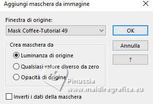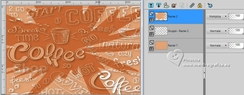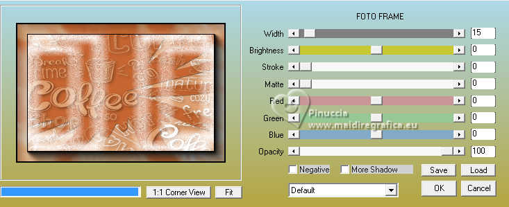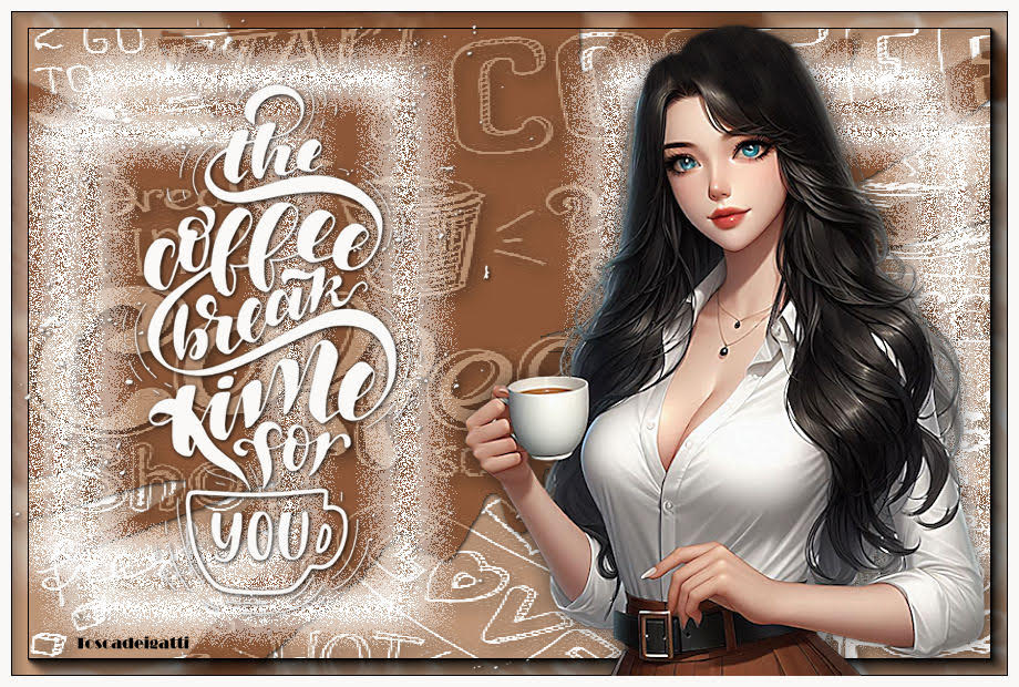 qui puoi trovare qualche risposta ai tuoi dubbi. Se l'argomento che ti interessa non è presente, ti prego di segnalarmelo. Questo tutorial è stato realizzato con PSP2020 e tradotto con PSPX9 e PSP2020, ma può essere eseguito anche con le altre versioni di PSP. Dalla versione X4, il comando Immagine>Rifletti è stato sostituito con Immagine>Capovolgi in orizzontale, e il comando Immagine>Capovolgi con Immagine>Capovolgi in verticale. Nelle versioni X5 e X6, le funzioni sono state migliorate rendendo disponibile il menu Oggetti. Con la nuova versione X7, sono tornati Rifletti>Capovolgi, ma con nuove varianti. Vedi la scheda sull'argomento qui ![]() Occorrente: 1 tube a scelta. Il resto del materiale ![]() (in questa pagina trovi i links ai siti dei creatori di tubes) Filtri: se hai problemi con i filtri, consulta la mia sezione filtri qui Filters Unlimited 2.0 qui AAA Frames - Foto Frame qui Toadies - Blast'n Blur qui I filtri Toadies si possono usare da soli o importati in Filters Unlimited (come fare vedi qui) Se un filtro fornito appare con questa icona ![]() non esitare a cambiare modalità di miscelatura e opacità secondo i colori utilizzati. ![]() Apri la maschera in PSP e minimizzala con il resto del materiale. 1. Apri una nuova immagine trasparente 900 x 600 pixels. 2. Sceglim e imposta il colore di primo piano con un colore del tuo tube; per l'esempio #e1a171. Imposta il colore di sfondo con il colore bianco ![]() Riempi l'immagine trasparente con il colore di primo piano.3. Livelli>Nuovo livello raster. Riempi il livello con il colore bianco.4. Livelli>Nuovo livello maschera>da immagine. Apri il menu sotto la finestra di origine e vedrai la lista dei files aperti. Seleziona la maschera Mask Coffee-Tutorial-49 ![]() 5. Effetti>Effetti di bordo>Aumenta di più. Livelli>Unisci>Unisci gruppo. 6. Effetti>Effetti 3D>Sfalsa ombra, colore nero. ![]() 7. Livelli>Nuovo livello raster. Riempi il livello con il tuo colore di primo piano #e1a171.8. Effetti>Plugins>Filters Unlimited 2.0 - Distortion Filters - Splash. ![]() 9. Cambia la modalità di miscelatura di questo livello in Moltiplica. ![]() 10. Effetti>Effetti 3D>Sfalsa ombra, colore nero. ![]() 11. Apri il tube Deco Frame Elaine2025 ![]() Modifica>Copia. Torna al tuo lavoro e vai a Modifica>Incolla come nuovo livello. 12. Effetti>Plugins>Toadies - Blast'n Blur ![]() 13. Livelli>Unisci>Unisci tutto. 14. Effetti>Plugins>AAA Frames - Foto Frame. ![]() 15. Apri Frase Café_Tutorial 49.png ![]() Modifica>Copia. Torna al tuo lavoro e vai a Modifica>Incolla come nuovo livello. Posiziona il testo a tuo piacimento, o vedi il mio esempio.Effetti>Effetti 3D>Sfalsa ombra, colore nero. ![]() 16. Apri il tuo tube e vai a Modifica>Copia. Torna al tuo lavoro e vai a Modifica>Incolla come nuovo livello. Sposta il tube a destra, o come preferisci.Effetti>Effetti 3D>Sfalsa ombra, a scelta. 17. Immagine>Aggiungi bordatura, 10 pixels, simmetriche, colore bianco. 18. Firma il tuo lavoro e salva in formato jpg. Per i tubes di questi esempi grazie Blaque Heart Designz ![]() Catty Creations ![]() ![]() Le vostre versioni. Grazie ![]() Tosca dei gatti ![]() Cat ![]() Marygraphics ![]() Puoi scrivermi se hai problemi o dubbi, o trovi un link che non funziona, o soltanto per un saluto. |