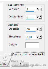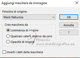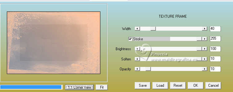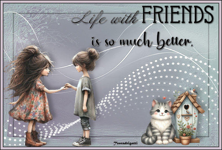 qui puoi trovare qualche risposta ai tuoi dubbi. Se l'argomento che ti interessa non è presente, ti prego di segnalarmelo. Questo tutorial è stato realizzato con PSP2020 e tradotto con PSPX9 e PSP2020, ma può essere eseguito anche con le altre versioni di PSP. Dalla versione X4, il comando Immagine>Rifletti è stato sostituito con Immagine>Capovolgi in orizzontale, e il comando Immagine>Capovolgi con Immagine>Capovolgi in verticale. Nelle versioni X5 e X6, le funzioni sono state migliorate rendendo disponibile il menu Oggetti. Con la nuova versione X7, sono tornati Rifletti>Capovolgi, ma con nuove varianti. Vedi la scheda sull'argomento qui ![]() Traduzione inglese quiOccorrente: a scelta: 1 tube. 1 tube accessorio. Il resto del materiale ![]() (in questa pagina trovi i links ai siti dei creatori di tubes) Filtri: se hai problemi con i filtri, consulta la mia sezione filtri qui AAA Frames - Texture Frame qui ![]() non esitare a cambiare modalità di miscelatura e opacità secondo i colori utilizzati. Nelle ultime versioni di PSP non c'è il gradiente di primo piano/sfondo (Corel_06_029) Puoi usare i gradienti delle versioni precedenti. Trovi qui i gradienti Corel X. ![]() Apri la maschera in PSP e minimizzala con il resto del materiale. 1. Apri una nuova immagine trasparente 900 x 600 pixels. 2. Scegli due colori dal tuo materiale; per l'esempio: colore di primo piano #56708b, colore di sfondo #f5b68d. ![]() 3. Passa il colore di primo piano a Gradiente di primo piano/sfondo, stile Lineare. ![]() 4. Riempi l'immagine trasparente con il colore chiaro di sfondo #f5b68d.5. Livelli>Nuovo livello raster. Riempi il livello con il gradiente.6. Livelli>Nuovo livello maschera>Da immagine. Apri il menu sotto la finestra di origine e vedrai la lista dei files aperti. Seleziona la maschera Mask Natureza ![]() Effetti>Effetti di bordo>Aumenta di più. Livelli>Unisci>Unisci gruppo. 7. Effetti>Effetti 3D>Sfalsa ombra, colore bianco. ![]() 8. Livelli>Unisci>Unisci tutto. Modifica>Copia 9. Effetti>Plugins>AAA Frames - Texture Frames - 3 volte con i seguenti settaggi: ![]() 10. Selezione>Seleziona tutto. Immagine>Aggiungi bordatura, 40 pixels, simmetriche, con un colore qualsiasi. Selezione>Inverti. Modifica>Incolla nella selezione - l'immagine in memoria dal punto 8. 11. Effetti>Effetti 3D>Sfalsa ombra, colore nero. ![]() Ripeti l'Effetto Sfalsa ombra, verticale e orizzontale -2. Selezione>Deseleziona. 12. Imposta il colore di primo piano con il colore bianco. Livelli>Nuovo livello raster. Riempi il livello con il colore bianco.14. Livelli>Nuovo livello maschera>Da immagine. Apri il menu sotto la finestra di origine e seleziona la maschera Mask Jolanta Malicka ![]() Effetti>Effetti di bordo>Aumenta di più. Livelli>Unisci>Unisci gruppo. 15. Apri il tuo tube e vai a Modifica>Copia. Torna al tuo lavoro e vai a Modifica>Incolla come nuovo livello. Immagine>Ridimensiona, se e quanto necessario, tutti i livelli non selezionato. Posiziona il tube a tuo piacimento.Effetti>Effetti 3D>Sfalsa ombra, a scelta. 16. Apri Frase Friends ![]() Modifica>Copia. Torna al tuo lavoro e vai a Modifica>Incolla come nuovo livello. Sposta il testo in alto a destra.(Nota dell'autrice: Prego gentilmente di non modificare niente di questo testo. Rispetta il mio lavoro) 17. Apri il tuo tube accessorio e vai a Modifica>Copia. Torna al tuo lavoro e vai a Modifica>Incolla come nuovo livello. Immagine>Ridimensiona, quanto necessario, tutti i livelli non selezionato. Posiziona il tube come preferisci.Effetti>Effetti 3D>Sfalsa ombra, a scelta. 18. Immagine>Aggiungi bordatura, 2 pixels, simmetriche, colore nero. Immagine>Aggiungi bordatura, 10 pixels, simmetriche, colore #fad3ba, o con il colore che preferisci. Immagine>Aggiungi bordatura, 2 pixels, simmetriche, colore nero. 19. Firma il tuo lavoro e salva in formato jpg. Per i tubes di questo esempio grazie Elaine ![]() ![]() Le vostre versioni. Grazie ![]() Tosca dei gatti ![]() Puoi scrivermi se hai problemi o dubbi, o trovi un link che non funziona, o soltanto per un saluto. |