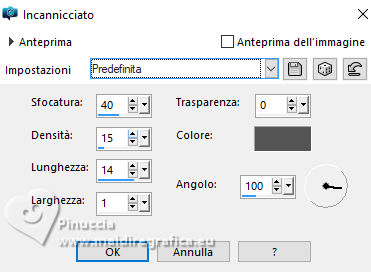 qui puoi trovare qualche risposta ai tuoi dubbi. Se l'argomento che ti interessa non è presente, ti prego di segnalarmelo. Questo tutorial è stato realizzato con PSP2020 e tradotto con PSPX9 e PSP2020, ma può essere eseguito anche con le altre versioni di PSP. Dalla versione X4, il comando Immagine>Rifletti è stato sostituito con Immagine>Capovolgi in orizzontale, e il comando Immagine>Capovolgi con Immagine>Capovolgi in verticale. Nelle versioni X5 e X6, le funzioni sono state migliorate rendendo disponibile il menu Oggetti. Con la nuova versione X7, sono tornati Rifletti>Capovolgi, ma con nuove varianti. Vedi la scheda sull'argomento qui ![]() Traduzione inglese quiOccorrente: 3 immagini a tema 1 tube principale. Il resto del materiale ![]() (in questa pagina trovi i links ai siti dei creatori di tubes) Filtri: se hai problemi con i filtri, consulta la mia sezione filtri qui Filters Unlimited 2.0 qui Mehdi - Wavy Lab 1.1 qui VM Distortion - Radial Pox qui AAA Frames - Foto Frame qui I filtri VM Distortion si possono usare da soli o importati in Filters Unlimited (come fare vedi qui) Se un filtro fornito appare con questa icona ![]() non esitare a cambiare modalità di miscelatura e opacità secondo i colori utilizzati. ![]() Apri le maschere in PSP e minimizzale con il resto del materiale. 1. Apri una nuova immagine trasparente 900 x 600 pixels. 2. Scegli 4 colori dalle tue immagini o dal tuo tube. Per l'esempio #676a49 - #f6cb7c - #f49249 - #3c586e ![]() Imposta il colore di primo piano con #676a49. e il colore di sfondo con #f6cb7c ![]() 3. Effetti>Plugins>Mehdi - Wavy Lab 1.1. questo filtro crea gradienti con i colori della paletta: il primo è il colore di sfondo, il secondo quello di primo piano; cambia gli ultimi due colori creati dal filtro. il terzo con il colore #f49249, il quarto con #3c586e ![]() per ottenere lo stesso risultato del tutorial originale, vedi il punto successivo, ho cambiato i settaggi del filtro: ![]() 4. Effetti>Plugins>Filters Unlimited 2.0 - VM Distortion - Radial Pox, con i settaggi standard. se non avessi cambiato i settaggi del filtro Mehdi, avrei avuto questo: ![]() Cambiando i settaggi del filtro Mehdi, questo il risultato del filtro Radial Pox ![]() così spero di essermi avvicinata il più possibile al risultato del tutorial originale: ![]() 5. Modifica>Copia Selezione>Seleziona tutto. Selezione>Modifica>Contrai - 40 pixels. 6. Livelli>Nuovo livello raster. Modifica>Incolla nella selezione 7. Effetti>Effetti di trama>Incannicciato, con i settaggi standard. ![]() Selezione>Deseleziona. 8. Imposta il colore di primo piano con il colore bianco. Livelli>Nuovo livello raster. Riempi il livello con il colore bianco.9. Livelli>Nuovo livello maschera>Da immagine Apri il menu sotto la finestra di origine e vedrai la lista dei files aperti. Seleziona la maschera Astrid masker 112.jpg ![]() Effetti>Effetti di bordo>Aumenta. Livelli>Unisci>Unisci gruppo. 10. Livelli>Unisci>Unisci tutto. 11. Effetti>Plugins>AAA Frames - Foto Frame. ![]() 12. Apri Template Tutorial 02 ![]() Modifica>Copia. Torna al tuo lavoro e vai a Modifica>Incolla come nuovo livello. 13. Attiva lo strumento Bacchetta magica , modalità Sostituisci![]() Clicca nel primo quadro per selezionarlo. Apri la tua prima immagine e vai a Modifica>Copia. Torna al tuo lavoro e vai a Modifica>Incolla nella selezione. Clicca nel secondo quadro per selezionarlo (in modalità Sostituisci automaticamente la nuova selezione annulla la precedente) ![]() Apri la tua seconda immagine e vai a Modifica>Copia. Torna al tuo lavoro e vai a Modifica>Incolla nella selezione. Clicca nell'ultimo quadro per selezionarlo Apri la tua terza immagine e vai a Modifica>Copia. Torna al tuo lavoro e vai a Modifica>Incolla nella selezione. Selezione>Deseleziona. 14. Effetti>Effetti 3D>Sfalsa ombra, colore nero. ![]() 15. Effetti>Effetti geometrici>Prospettiva orizzontale. ![]() 16. Imposta il colore di primo primo con un colore più chiaro della tua immagine. Io ho usato #fff17f. Livelli>Nuovo livello raster. Riempi il livello con il colore di primo piano.17. Livelli>Nuovo livello maschera>Da immagine Apri il menu sotto la finestra di origine e seleziona la maschera NarahsMasks_1804.jpg ![]() Effetti>Effetti di bordo>Aumenta. Livelli>Unisci>Unisci gruppo. 18. Apri il tuo tube e vai a Modifica>Copia. Torna al tuo lavoro e vai a Modifica>Incolla come nuovo livello. Immagine>Ridimensiona, se e quanto necessario, tutti i livelli non selezionato. Sposta il tube a sinistra, o come preferisci.Effetti>Effetti 3D>Sfalsa ombra, a scelta. 19. Apri il wordart Word Its Summer ![]() Modifica>Copia. Torna al tuo lavoro e vai a Modifica>Incolla come nuovo livello. Sposta il tube in alto o come preferisci.20. Immagine>Aggiungi bordatura, 1 pixel, simmetriche, colore nero. 21. Firma il tuo lavoro e salva in formato jpg. ![]() ![]() Le vostre versioni. ![]() Kika ![]() Puoi scrivermi se hai problemi o dubbi, o trovi un link che non funziona, o soltanto per un saluto. |