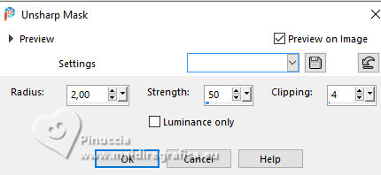 Adjust>Sharpness>Unsharp Mask, same settings.