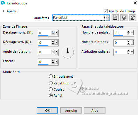 21. Effets>Effets de réflexion>Kaléïdoscope, par défaut.