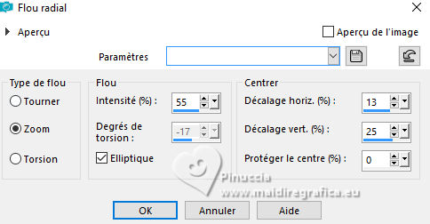 13. Réglage>Flou>Flou radial.