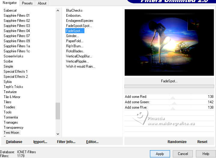 13. Effets>Modules Externes>Filters Unlimited 2.0 - Two Moon - FadeSpot, par défaut