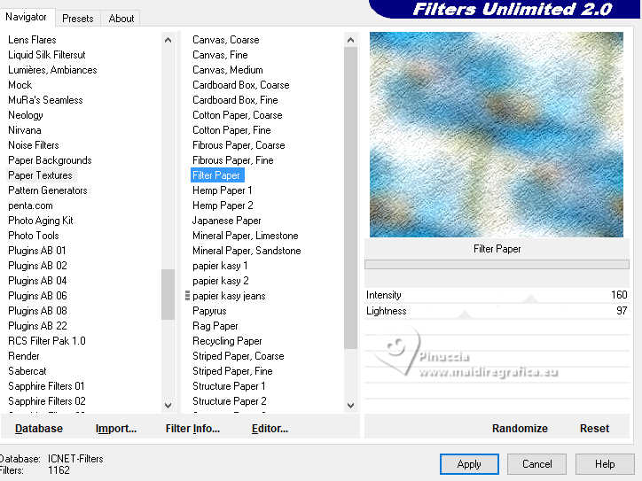 Effets>Modules Externes>Filters Unlimited 2.0 - Paper Texture - Filter Paper.