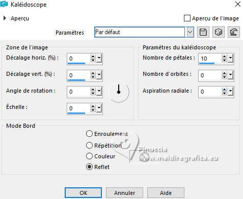 Effets>Effets de réflexion>Kaléïdoscope, par défaut.