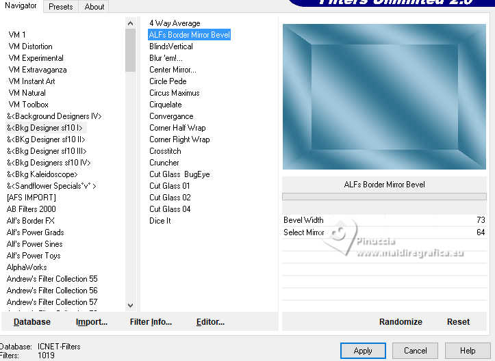 3. Effects>Plugins>Filters Unlimited 2.0 - &<Bkg Designer sf10I&gT; - Alfs Border Mirror Bevel.