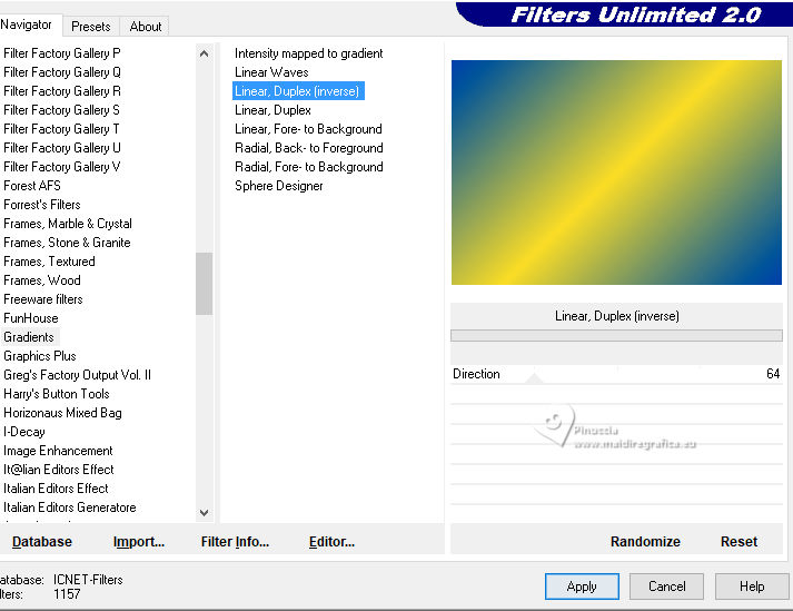 2. Effects>Plugins>Filters Unlimited 2.0 - Gradients - Linear,Duplex(inverse).