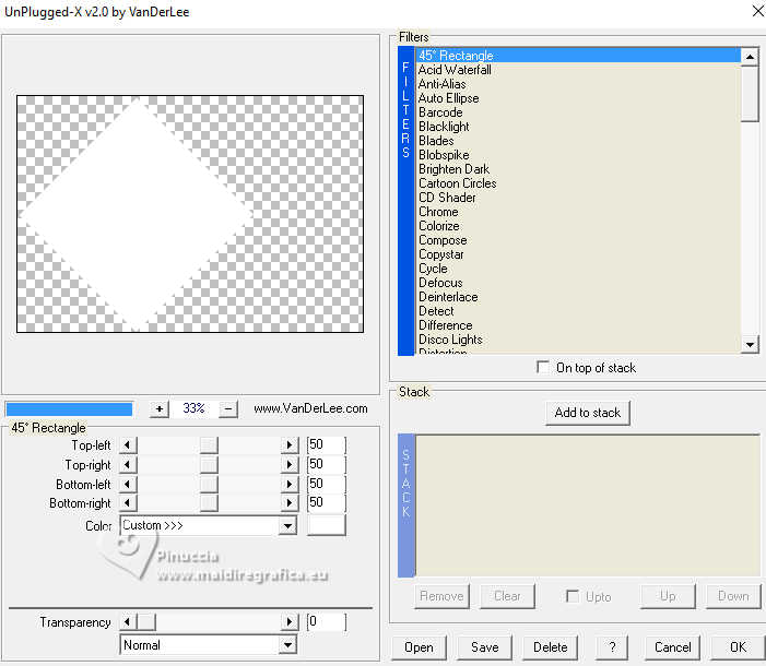 Effects>Plugins>VanDerLee - Unplugged-X - 45° Rectangle.