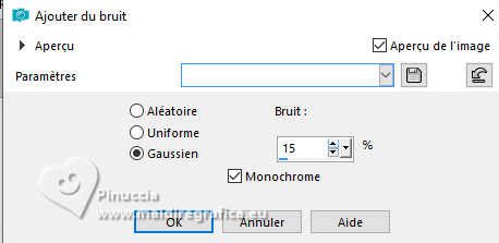 Réglage>Ajouter/Supprimer du bruit>Ajouter du bruit, comme précédemment.