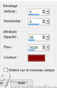 Effets>Effets 3D>Ombre portée, couleur 3 #8c0000.