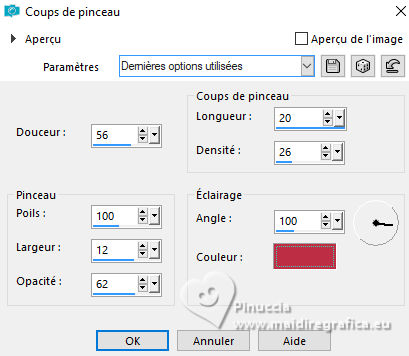 5. Effets>Effets de traits ou Effets Art Média>Coups de pinceau - couleur 3 #8c0000.