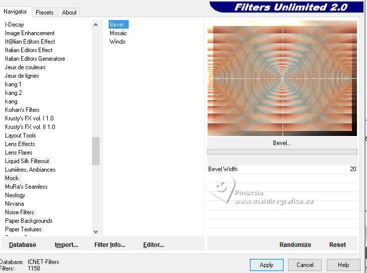 9. Effets>Modules Externes>Filters Unlimited 2.0 - Mock - Bevel.