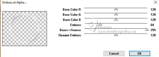 12. Effets>Modules Externes>Mura's Seamless - Emboss at Alpha, par défaut.