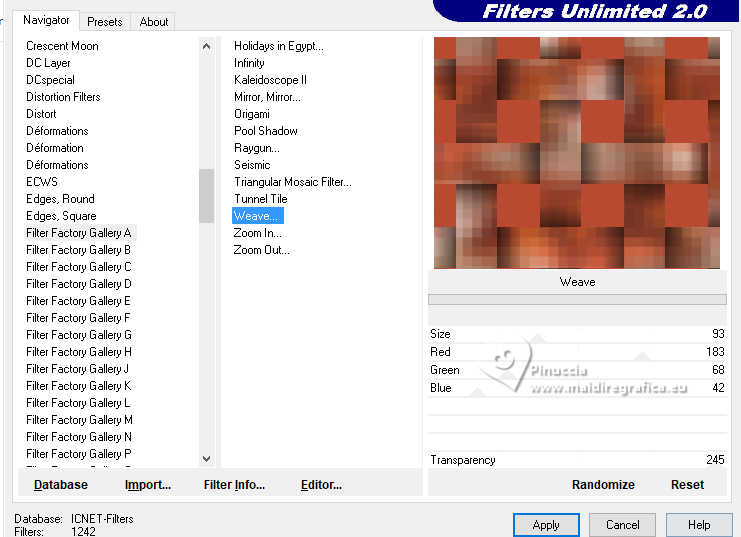 Effets>Modules Externes>Filters Unlimited 2.0 - Filter Factory Gallery A - Weaver