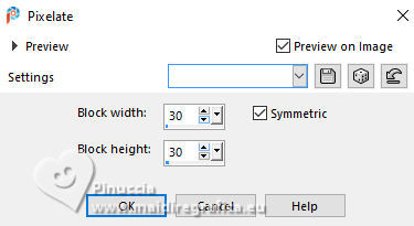 6. Effects>Distortion Effects>Pixelate.