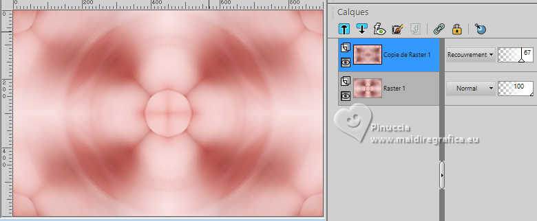 Placer le calque en mode Recouvrement et réduire l'opacité à 67%