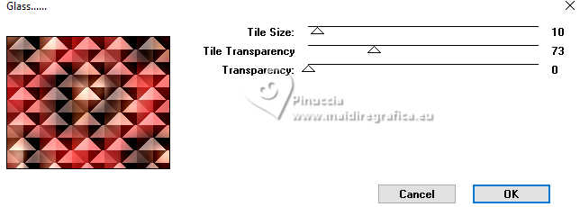 Effets>Modules Externes>Tramages - Glass, par défaut.