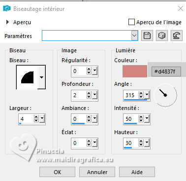 19. Effets>Effets 3D>Biseautage intérieur, avec une couleur de votre image; pour moi #d4837f.