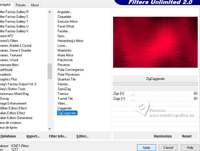 4. Effects>Plugins>Filters Unlimited 2.0 - Funhouse - ZigZaggerate, par défaut.