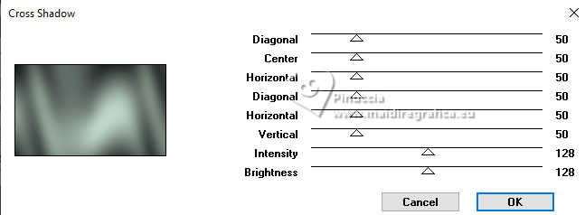 6. Effets>Modules Externes>Graphics Plus - Cross Shadow, par défaut.