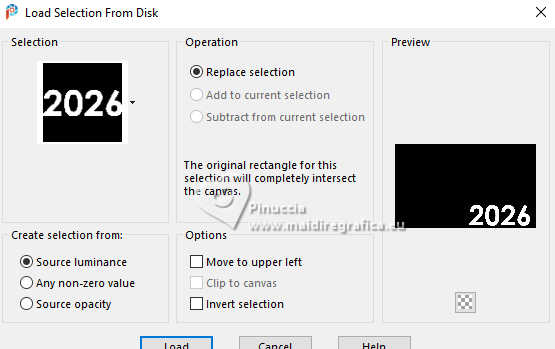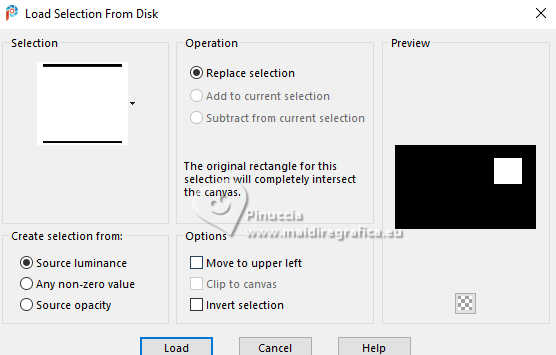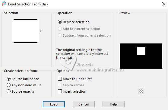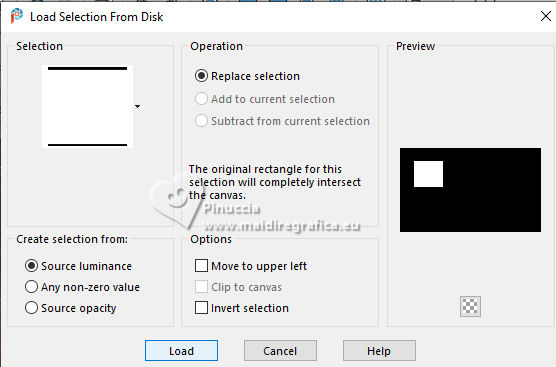 17. Selections>Load/Save Selection>Load Selection from Disk.