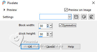 3. Effects>Distortion Effects>Pixelate.