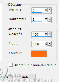 14. Effets>Effets 3d>Ombre portée, couleur d'avant plan #fe6a0e.